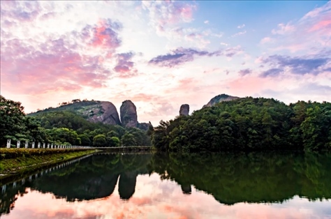 位于江西上饒市弋陽縣的龜峰,既有精雕細(xì)刻的靈巧,又有刀削斧劈的粗獷。景區(qū)內(nèi)有丹霞峰林、峰叢、孤峰石柱等自然景觀23種,有著“丹霞模式標(biāo)本”的美譽(yù)。