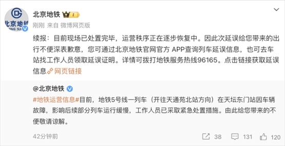 央視網(wǎng)消息:據(jù)@北京地鐵 微博消息,目前現(xiàn)場已處置完畢,運營秩序正在逐步恢復(fù)中。此前,北京地鐵發(fā)文稱,地鐵5號線一列車(開往天通苑北站方向)在天壇東門站因車輛故障,影響后續(xù)部分列車運行緩慢,工作人員已采取緊急處置措施。