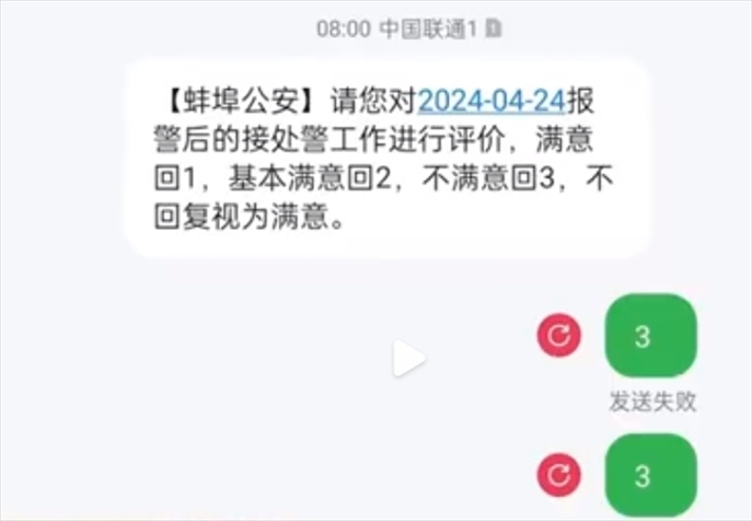·滿意度調(diào)查回復“不滿意”遭攔截?蚌埠公安民意熱線:或因網(wǎng)絡故障。