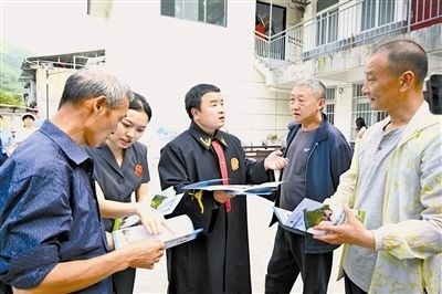 圖②:法院干警向群眾普及法律知識(shí)。