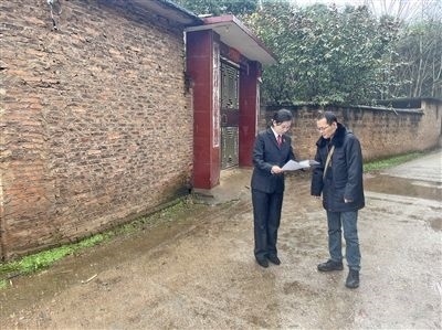 黃麗芳在村子里走訪尋找被執(zhí)行人線索。羅志航 攝