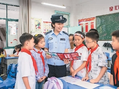 安徽省蕪湖市公安局繁昌分局城關(guān)派出所民警給小學(xué)生普及網(wǎng)絡(luò)安全知識(shí)。肖本祥攝(人民視覺(jué))