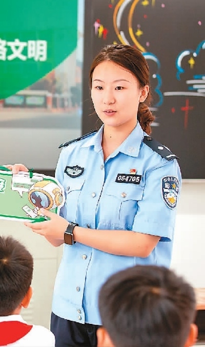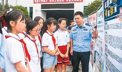 江西省宜春市公安局袁州分局鳳凰派出所民警在黃頗小學(xué)向?qū)W生講解防范網(wǎng)絡(luò)詐騙等知識。周 亮攝(人民視覺)