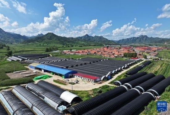 這是7月26日在隆化縣章吉營(yíng)鎮(zhèn)拍攝的食用菌大棚(無(wú)人機(jī)照片)。