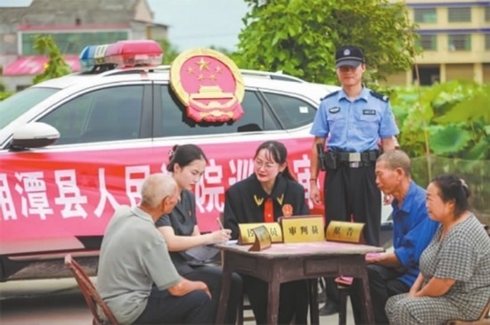 花石法庭與當(dāng)?shù)厮痉ㄋ?、派出所、律師事?wù)所聯(lián)合村委會(huì)就該案開(kāi)展了分析研判,多次組織雙方當(dāng)事人協(xié)商,一直未達(dá)成協(xié)議。為避免糾紛久拖不決,同時(shí)考慮到雙方是幾十年的鄰居,法官?zèng)Q定將庭審“搬”至當(dāng)事人家門口。