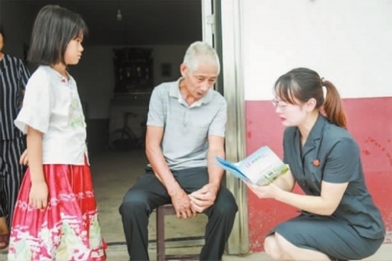 圖③:法官在庭后開(kāi)展普法宣傳。
