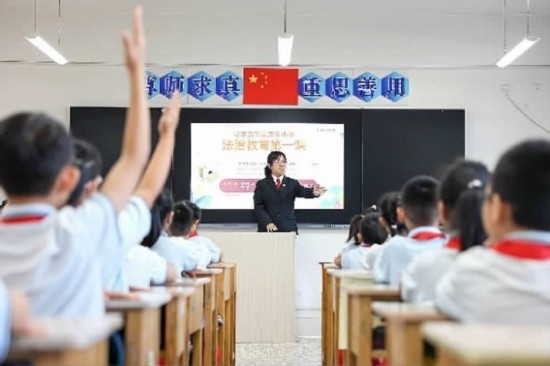 近日,吉林省四平市鐵西區(qū)人民法院依托法治副校長工作機制,攜手四平市陽光實驗小學舉辦了一場生動的“開學第一課”,通過與同學們互動問答、角色扮演等形式,為青少年健康成長營造良好法治環(huán)境,不斷提升青少年群體的法治素養(yǎng)。圖為法官與同學們在課堂上進行互動交流。(記者 孫兵 通訊員 任青陽)