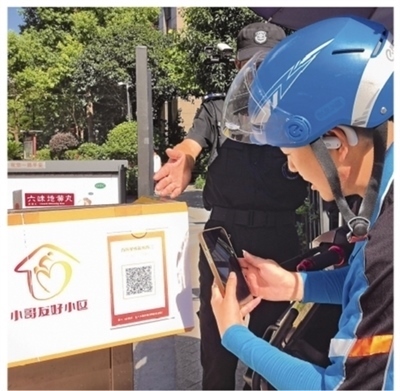 這些小區(qū)大門(mén)處張貼專(zhuān)屬二維碼,快遞員、外賣(mài)員們只需拿出手機(jī)掃一掃,便可實(shí)現(xiàn)身份認(rèn)證,還可線上查看“小區(qū)地圖”,“一鍵導(dǎo)航”迅速定位送餐送貨樓棟。同時(shí),小區(qū)也可以掌握這些小哥的行動(dòng)軌跡。