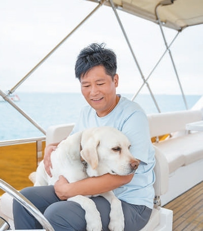 趙秋寶和他的導盲犬阿爾法。