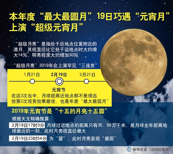 元宵將至,月滿冰輪。天文專家表示,2019年的元宵月不僅恰逢“年度最大最圓月”,還是“十五月亮十五圓”,最圓時刻出現(xiàn)在19日23時54分。屆時,我國凡是天氣晴朗的地方,都將會出現(xiàn)“皓月當(dāng)空照”的天文美景。