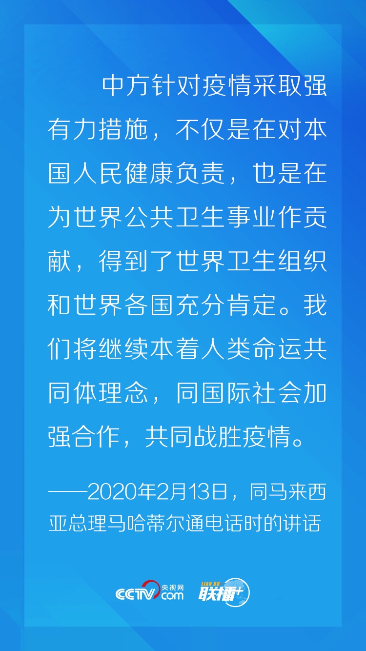 新冠肺炎疫情發(fā)生以來,習(xí)近平主席始終堅持人民至上理念,在統(tǒng)籌做好本國疫情防控和經(jīng)濟社會發(fā)展工作的同時,頻繁與多個國家領(lǐng)導(dǎo)人及國際組織負責人保持電話、書信、視頻會議為主渠道的“云外交”溝通,處處體現(xiàn)著習(xí)近平主席以人民為中心的發(fā)展思想。
