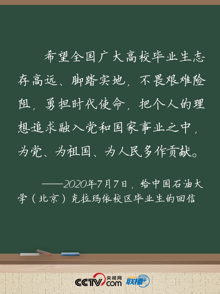 7月7日,習(xí)近平總書記給中國(guó)石油大學(xué)(北京)克拉瑪依校區(qū)畢業(yè)生回信,肯定他們到邊疆基層工作的選擇,并對(duì)廣大高校畢業(yè)生提出殷切期望。