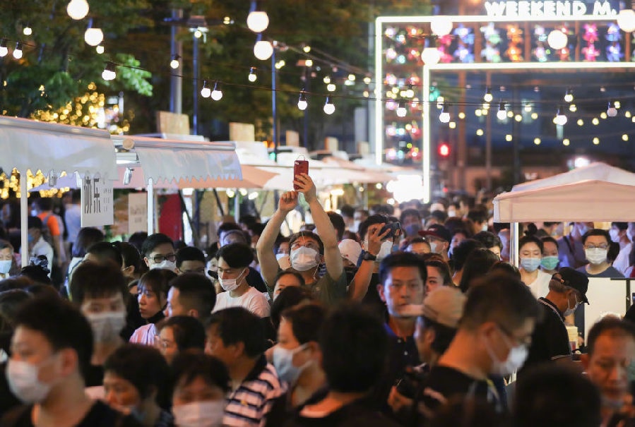 2020年6月6日,市民在上海市黃浦區(qū)的一處夜市消費休閑。新華社記者丁汀攝