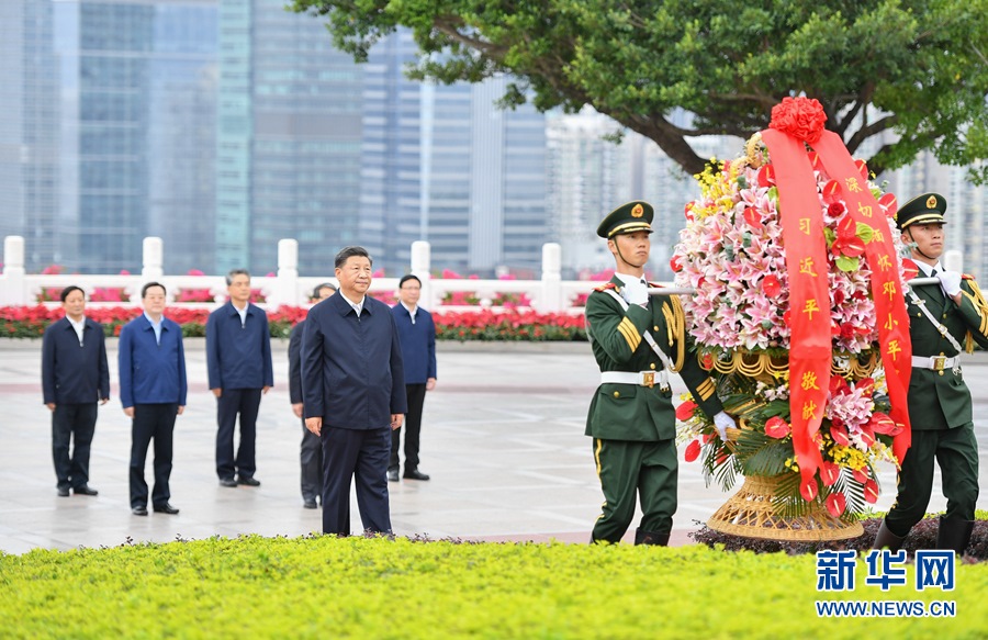 10月14日,深圳經(jīng)濟特區(qū)建立40周年慶祝大會在廣東省深圳市隆重舉行。中共中央總書記、國家主席、中央軍委主席習(xí)近平在會上發(fā)表重要講話。這是當(dāng)天下午,習(xí)近平來到蓮花山公園,向鄧小平同志銅像敬獻花籃。 新華社記者 王曄 攝