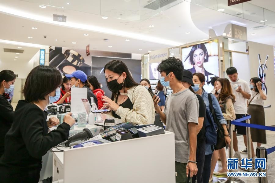 10月27日,消費(fèi)者在海南省??谑腥赵聫V場(chǎng)免稅店選購商品。新華社記者 張麗蕓 攝