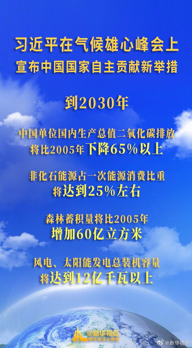 12月12日,國家主席習(xí)近平在氣候雄心峰會(huì)上宣布中國國家自主貢獻(xiàn)新舉措?! ?/p>