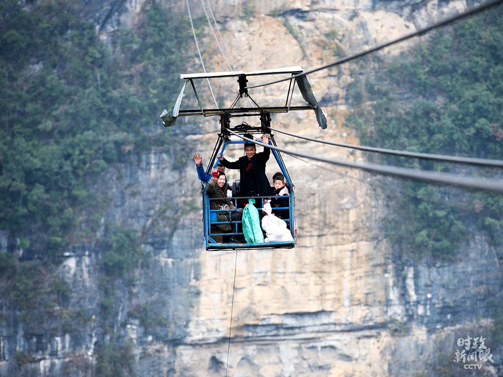 △位于湖北恩施漁山村的這條溜索,長720米、高400米,村民通過溜索不僅可以快捷出山、提高出行效率,還能外銷農(nóng)家山貨,實(shí)現(xiàn)增收。