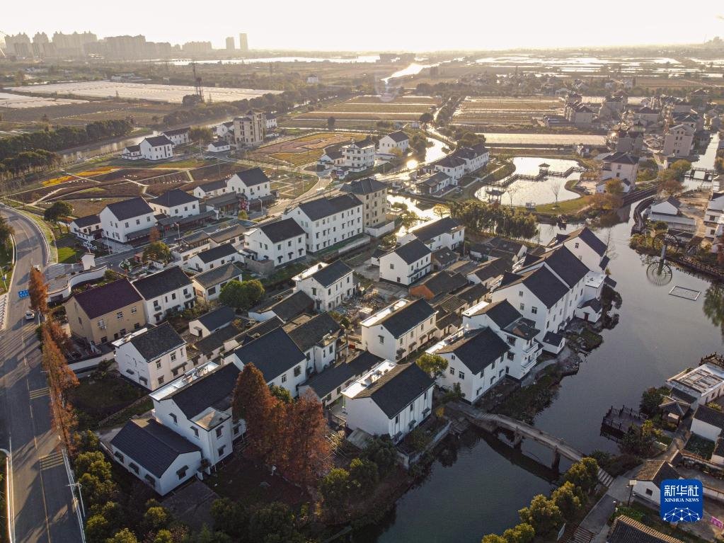 浙江省嘉興市秀洲區(qū)油車港鎮(zhèn)勝豐村景色( 2020年12月15日攝,無(wú)人機(jī)照片)。新華社記者 江漢 攝