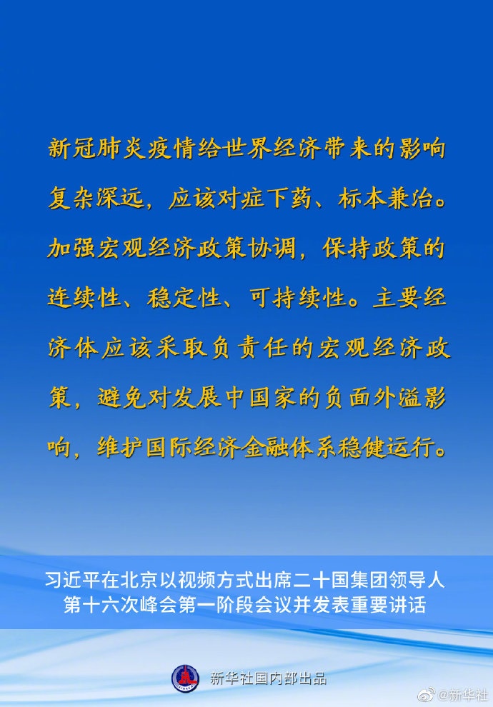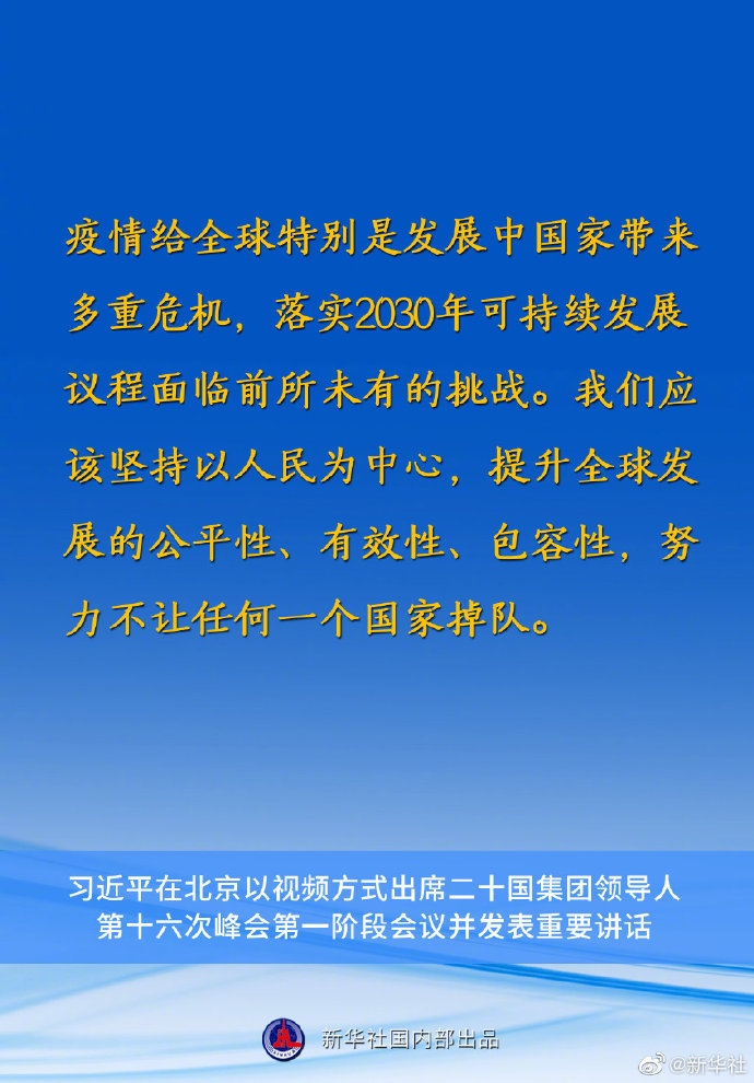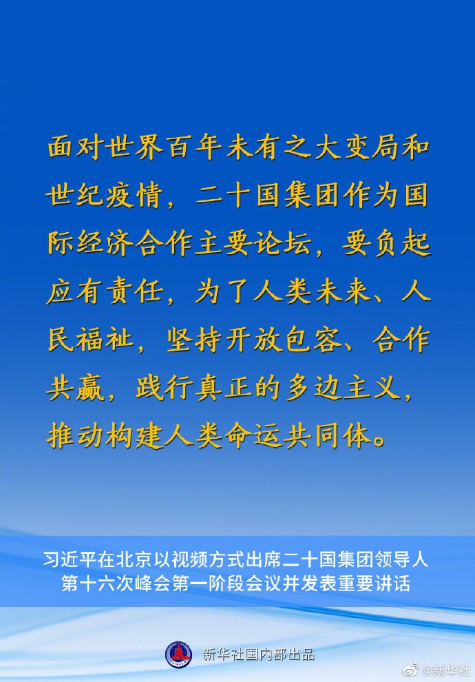 國家主席習(xí)近平10月30日在北京以視頻方式出席二十國集團(tuán)領(lǐng)導(dǎo)人第十六次峰會第一階段會議并發(fā)表重要講話。講話有哪些要點(diǎn),一起來看↓