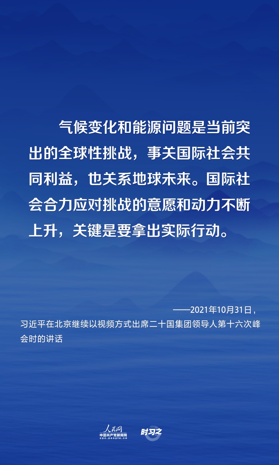 國(guó)家主席習(xí)近平10月31日晚在北京繼續(xù)以視頻方式出席二十國(guó)集團(tuán)領(lǐng)導(dǎo)人第十六次峰會(huì)。今年以來,就如何應(yīng)對(duì)氣候變化和能源問題這一全球性挑戰(zhàn),習(xí)近平多次提出中國(guó)倡議和中國(guó)方案。