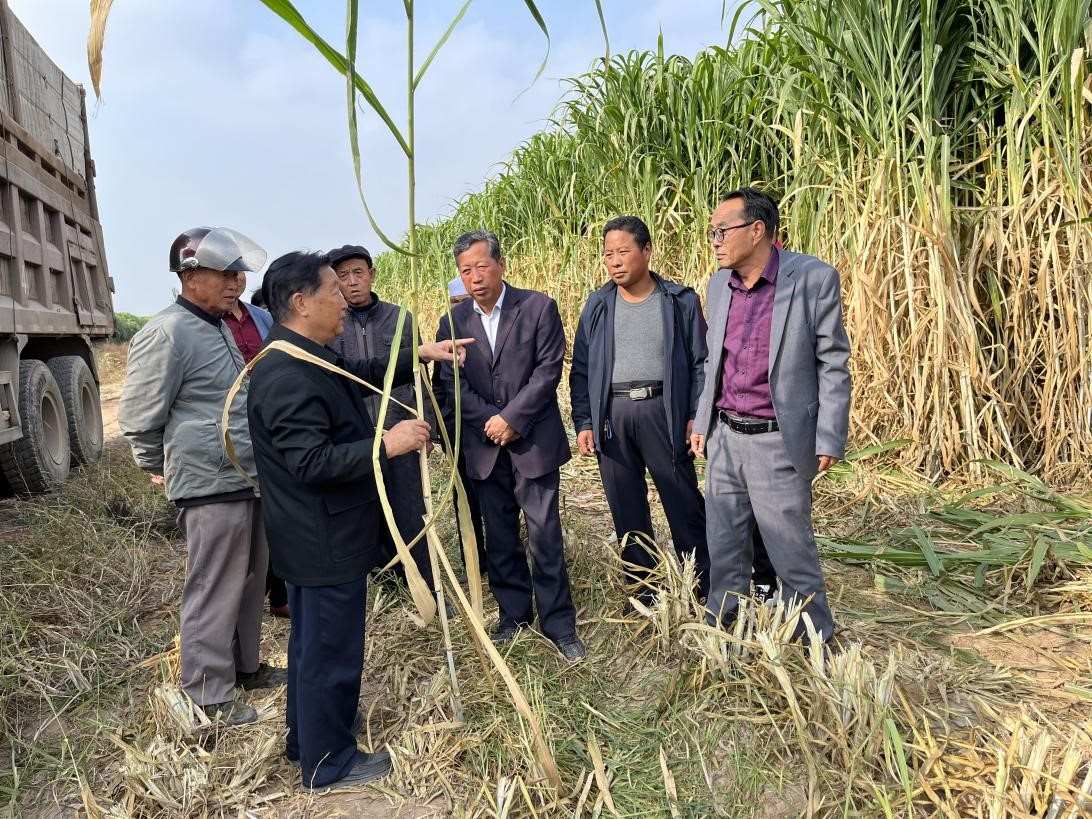 2021年10月,林占熺在寧夏石嘴山市寶豐村的豐收現(xiàn)場向老鄉(xiāng)介紹菌草。林良輝攝