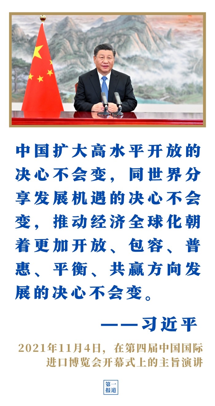第四屆進博會上,習近平主席表示,中國愿同各國共建開放型世界經濟,讓開放的春風溫暖世界;第三次“一帶一路”建設座談會上,習近平主席強調以高標準、可持續(xù)、惠民生為目標,繼續(xù)推動共建“一帶一路”高質量發(fā)展。