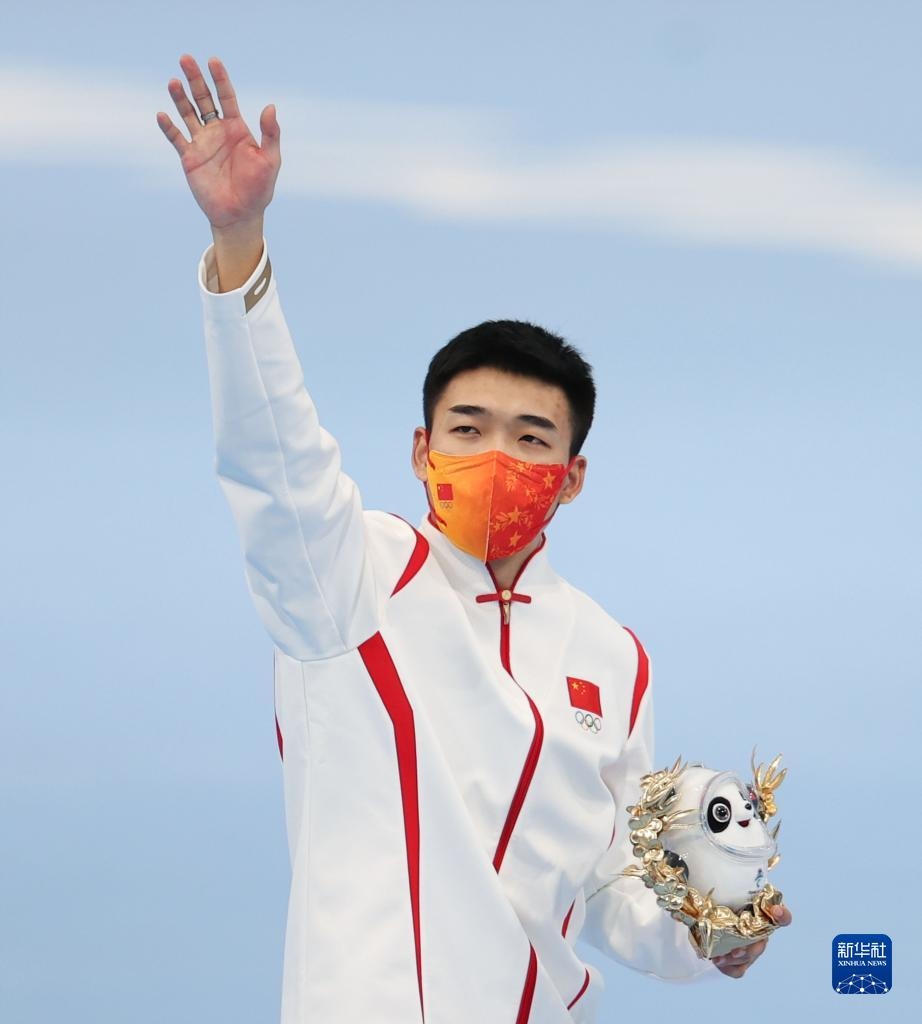 2月8日,短道速滑男子1000米比賽冠軍、中國選手任子威在獎(jiǎng)牌頒發(fā)儀式上。新華社記者 鞠煥宗 攝