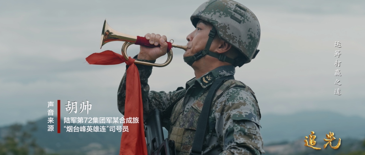 時隔72年,胡帥接過了張群生的軍號,成為了連隊里的司號員。