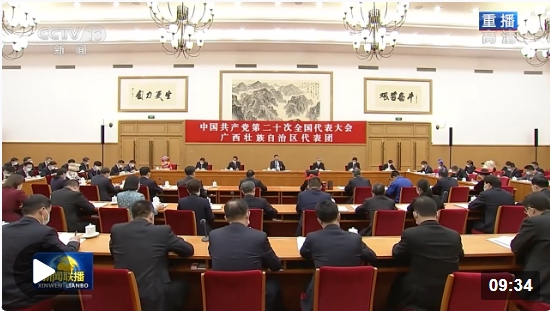 10月17日,在作完黨的二十大報告的第二天,總書記來到了廣西代表團。