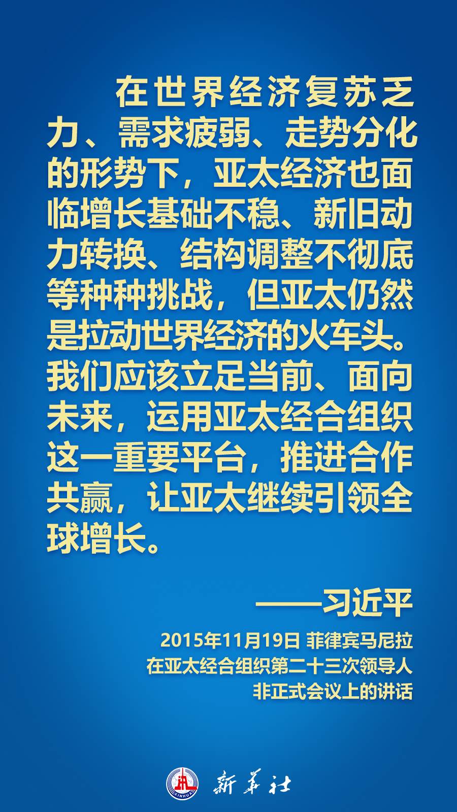 在以往的亞太經(jīng)合組織領(lǐng)導(dǎo)人非正式會議上,習(xí)近平主席多次闡述構(gòu)建開放包容、創(chuàng)新增長、互聯(lián)互通、合作共贏的亞太命運共同體的理念主張和重大意義,為亞太乃至全球經(jīng)濟發(fā)展指明方向,注入強勁動力。