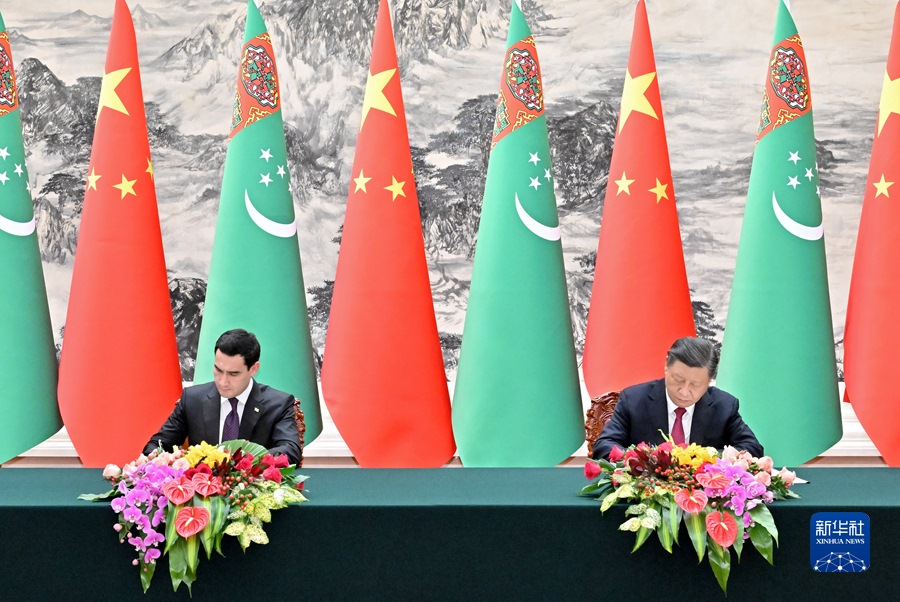 會(huì)談后,兩國(guó)元首簽署并發(fā)表《中華人民共和國(guó)和土庫曼斯坦聯(lián)合聲明》,共同見證簽署“一帶一路”、綠色發(fā)展、數(shù)字經(jīng)濟(jì)、衛(wèi)生、文化、體育、新聞媒體、天然氣等領(lǐng)域合作文件。