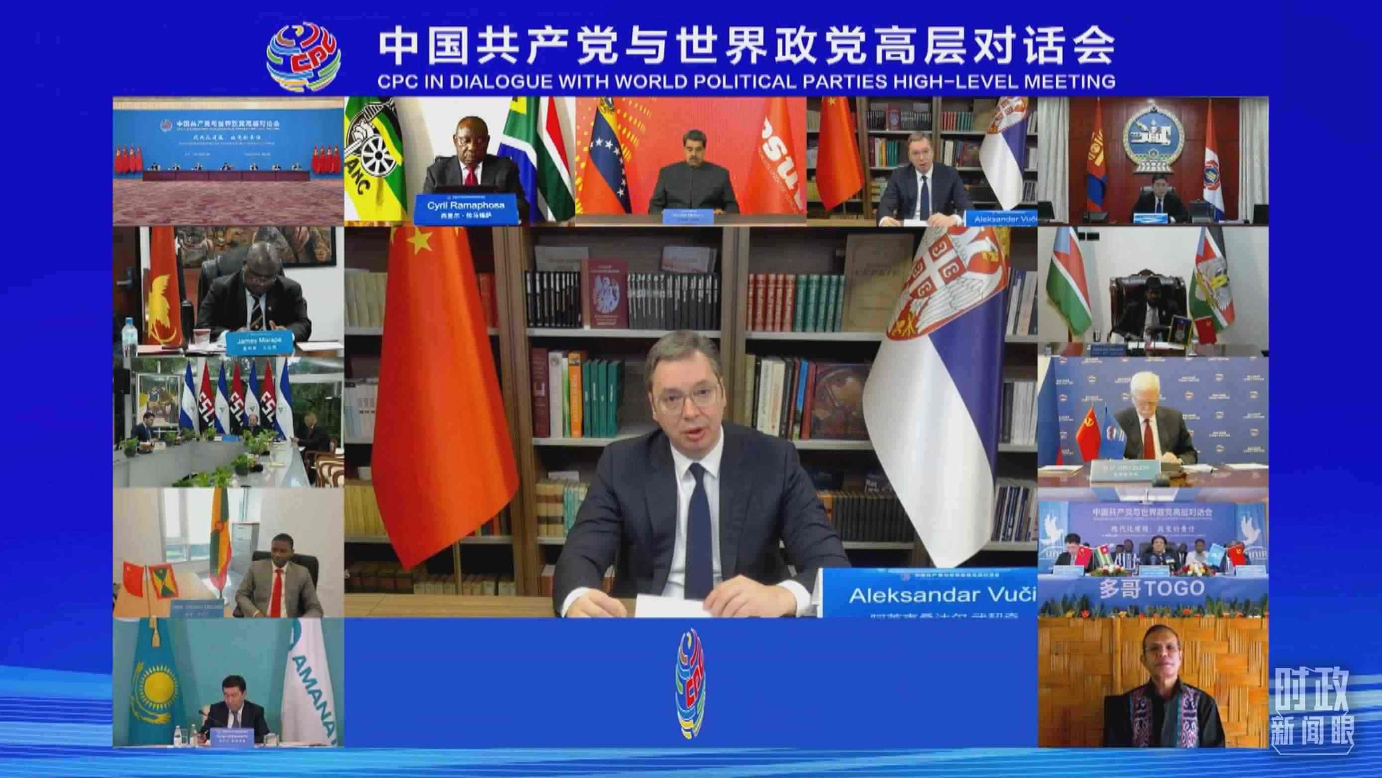 2021年7月6日,在慶祝中國共產(chǎn)黨成立100周年大會結(jié)束5天之后,中國共產(chǎn)黨與世界政黨領(lǐng)導(dǎo)人峰會以視頻連線方式舉行。來自160多個(gè)國家的500多個(gè)政黨和政治組織的領(lǐng)導(dǎo)人出席會議。