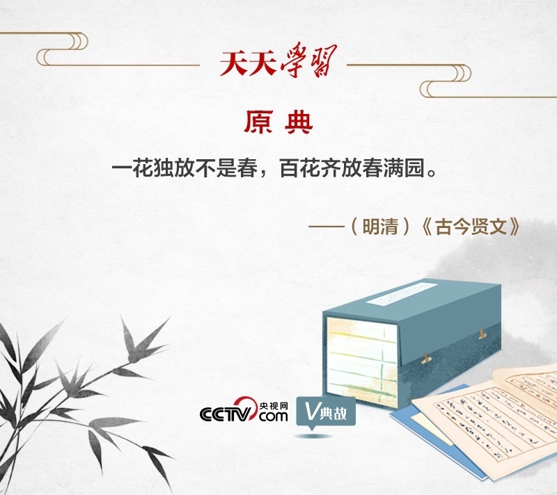 “一花獨放不是春,百花齊放春滿園”,意思是,一枝單獨開放的花朵不能代表春天的到來,只有百花競艷才是人間春色。這句民諺之所以廣為流傳,是因為飽含深刻哲理:一、闡述了整體和部分的辯證關(guān)系,“一花”是部分,“百花”是整體,部分的功能是較小的,要以整體發(fā)展帶動部分發(fā)展;二、體現(xiàn)了聯(lián)系的觀點,聯(lián)系具有普遍性,“一花”和“百花”是相互聯(lián)系的,因此要尊重文化的多樣性;三、說明了事物是客觀的和發(fā)展變化的,“百花齊放”是必然的,因此要順應(yīng)歷史潮流。