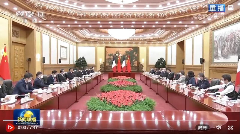 馬克龍表示,我對3年多前訪華情景記憶猶新,非常高興再次訪華,同習近平主席共同探討進一步提升法中全面戰(zhàn)略伙伴關系。我完全贊同習近平主席對法中關系的積極評價以及就發(fā)展雙邊關系提出的重要建議。明年法中將共同慶祝建交60周年。60年來,法中關系保持了穩(wěn)定健康發(fā)展。雖然法中兩國發(fā)展模式不同,但雙方相互尊重,坦誠交流,各領域合作實現(xiàn)了互利互惠,同時在合作應對當今世界面臨的全球性挑戰(zhàn)方面取得重要進展。法方尊重并奉行一個中國政策。我此次率龐大代表團訪華,就是希望同中方加強合作,促進人文交流。法方祝賀中方成功舉辦昆明-蒙特利爾《生物多樣性公約》第十五次締約方大會,希望繼續(xù)在氣候變化、糧食安全等問題上同中方密切溝通合作。中方將舉辦第三屆“一帶一路”國際合作高峰論壇,法方愿同中方就此開展合作。法方贊賞中方始終遵守聯(lián)合國憲章宗旨,為解決國際地區(qū)熱點問題發(fā)揮積極作用,期待同中方密切溝通協(xié)作,努力實現(xiàn)世界的持久和平與穩(wěn)定。