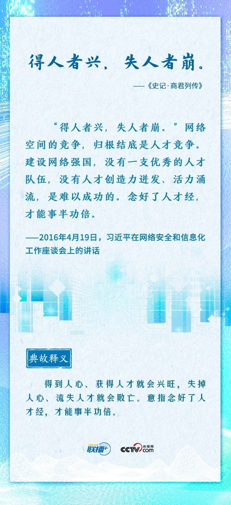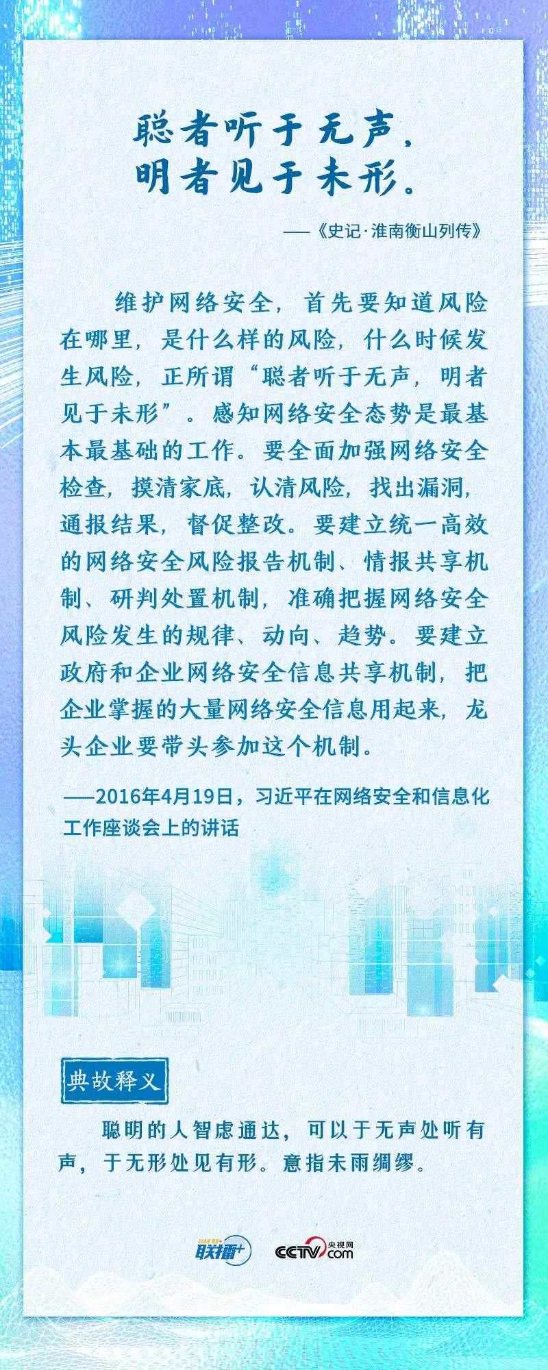 值此網(wǎng)絡安全和信息化工作座談會召開七周年之際,央視網(wǎng)《聯(lián)播+》推出海報,邀您一起重溫總書記的經(jīng)典論述。