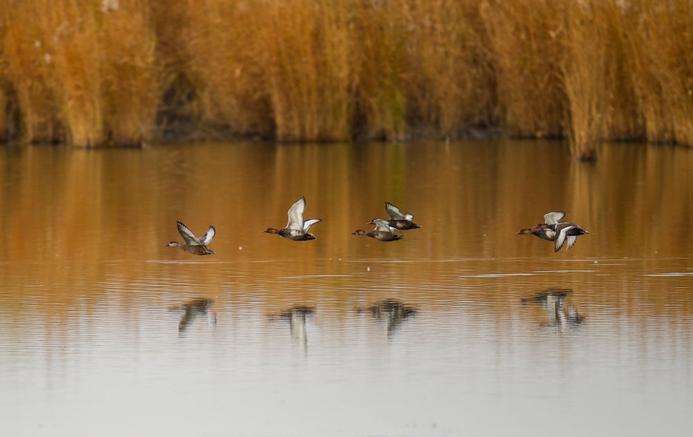 2020年10月28日,候鳥(niǎo)在烏梁素海飛翔。