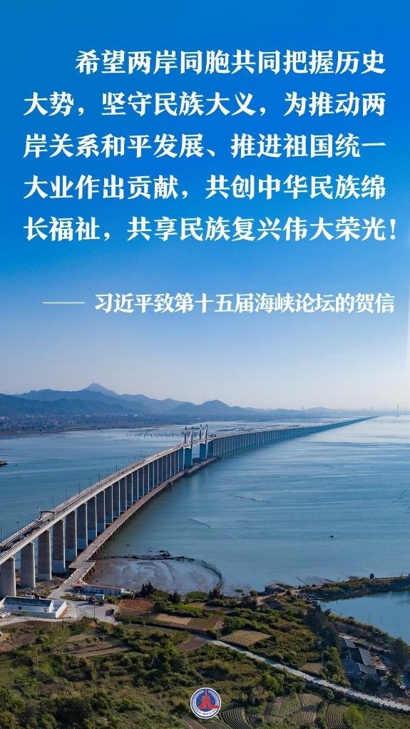 6月17日,中共中央總書(shū)記、國(guó)家主席習(xí)近平向第十五屆海峽論壇致賀信。