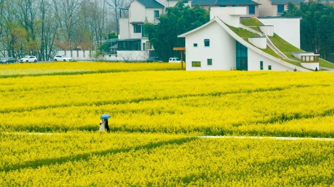 △2023年3月16日,浙江省杭州市桐廬縣梅蓉村千畝油菜花競(jìng)相綻放,吸引游人休閑賞花。