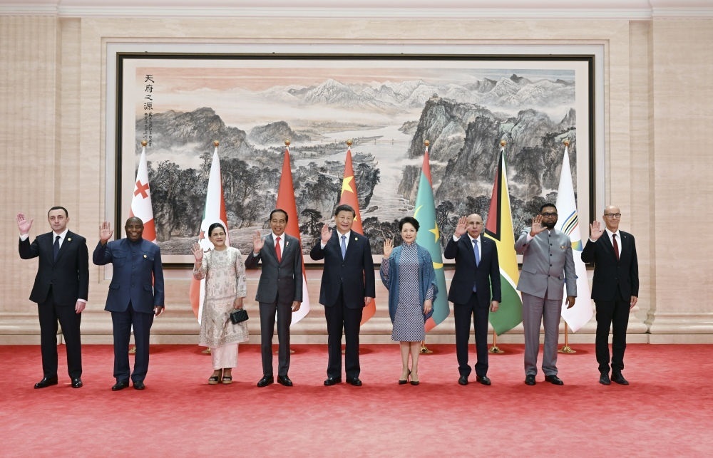 11時(shí)30分許,《天府之源》巨幅壁畫前,習(xí)近平主席和夫人彭麗媛熱情歡迎印度尼西亞總統(tǒng)佐科和夫人伊莉亞娜、毛里塔尼亞總統(tǒng)加茲瓦尼、布隆迪總統(tǒng)恩達(dá)伊施米耶、圭亞那總統(tǒng)阿里、格魯吉亞總理加里巴什維利以及國(guó)際大體聯(lián)代理主席艾德等國(guó)際貴賓,同他們一一親切握手,互致問候并合影留念。