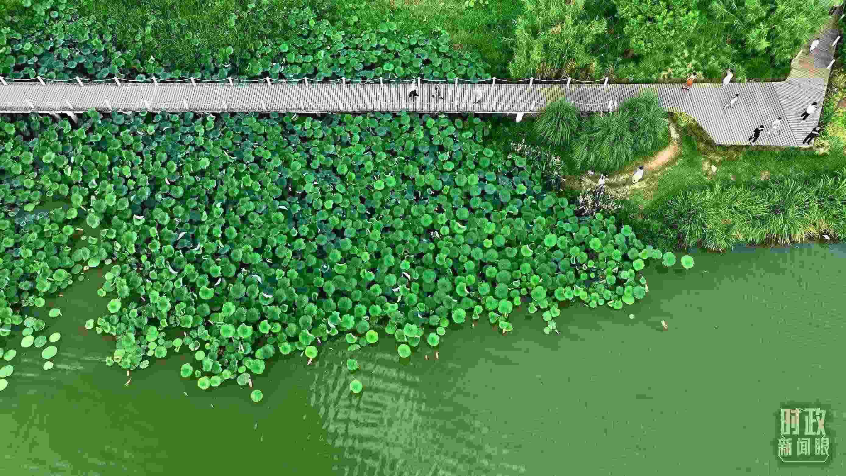 △天漢濕地公園內(nèi),游人穿行,荷影婆娑。(總臺記者劉海濤拍攝)
