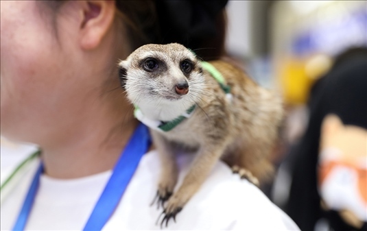 上海,第25屆亞洲寵物展覽會上的狐獴。本屆展會自8月16日舉辦,為期5天,吸引來自寵物食品、寵物服裝、寵物用品、寵物醫(yī)療、寵物智能產(chǎn)品等領(lǐng)域的2000余家展商參展。