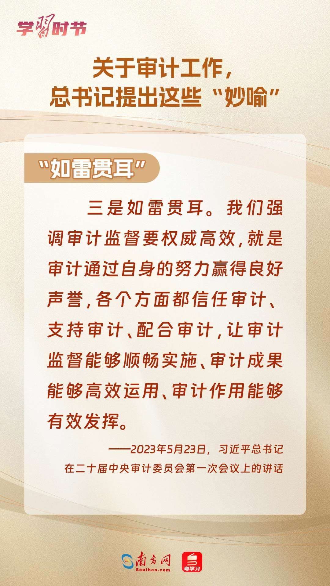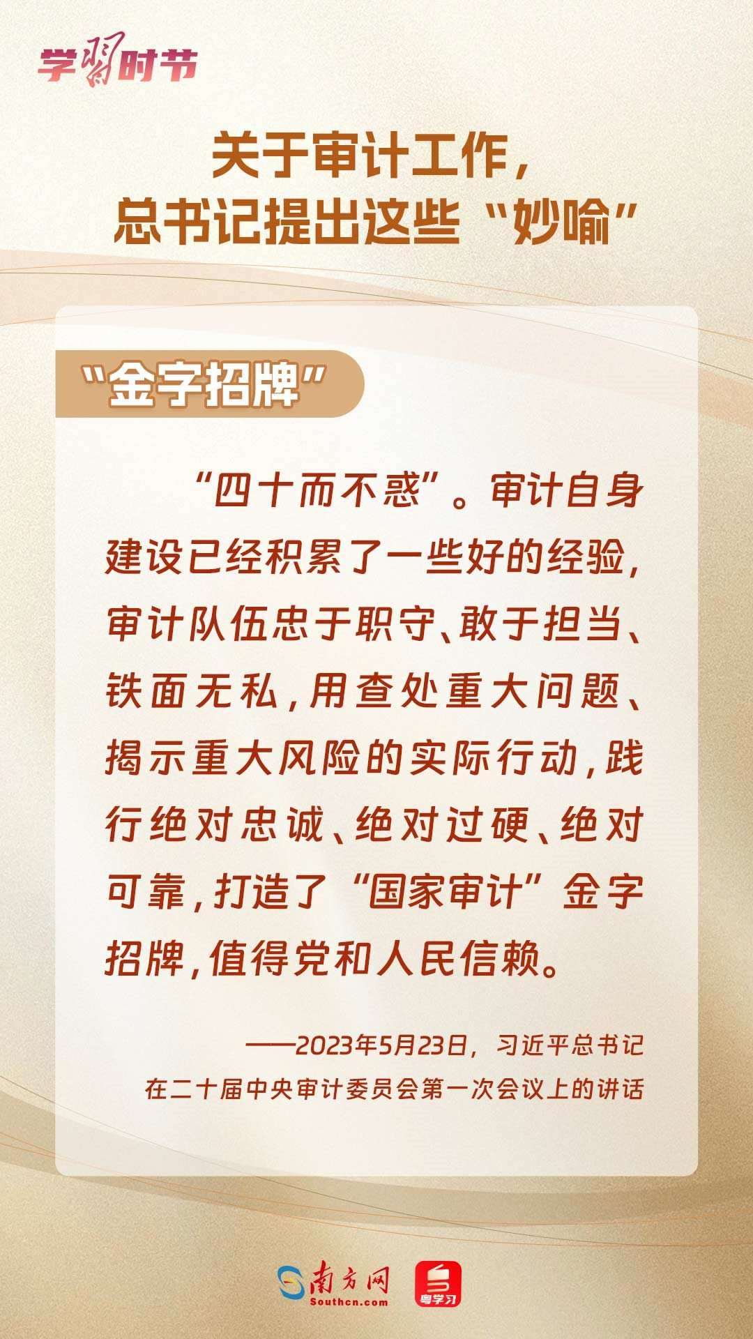 11月1日出版的《求是》雜志刊登了習(xí)近平總書記在二十屆中央審計(jì)委員會(huì)第一次會(huì)議上的講話全文??倳浽谥匾v話中“妙喻”審計(jì)工作,讓我們一同學(xué)習(xí)。