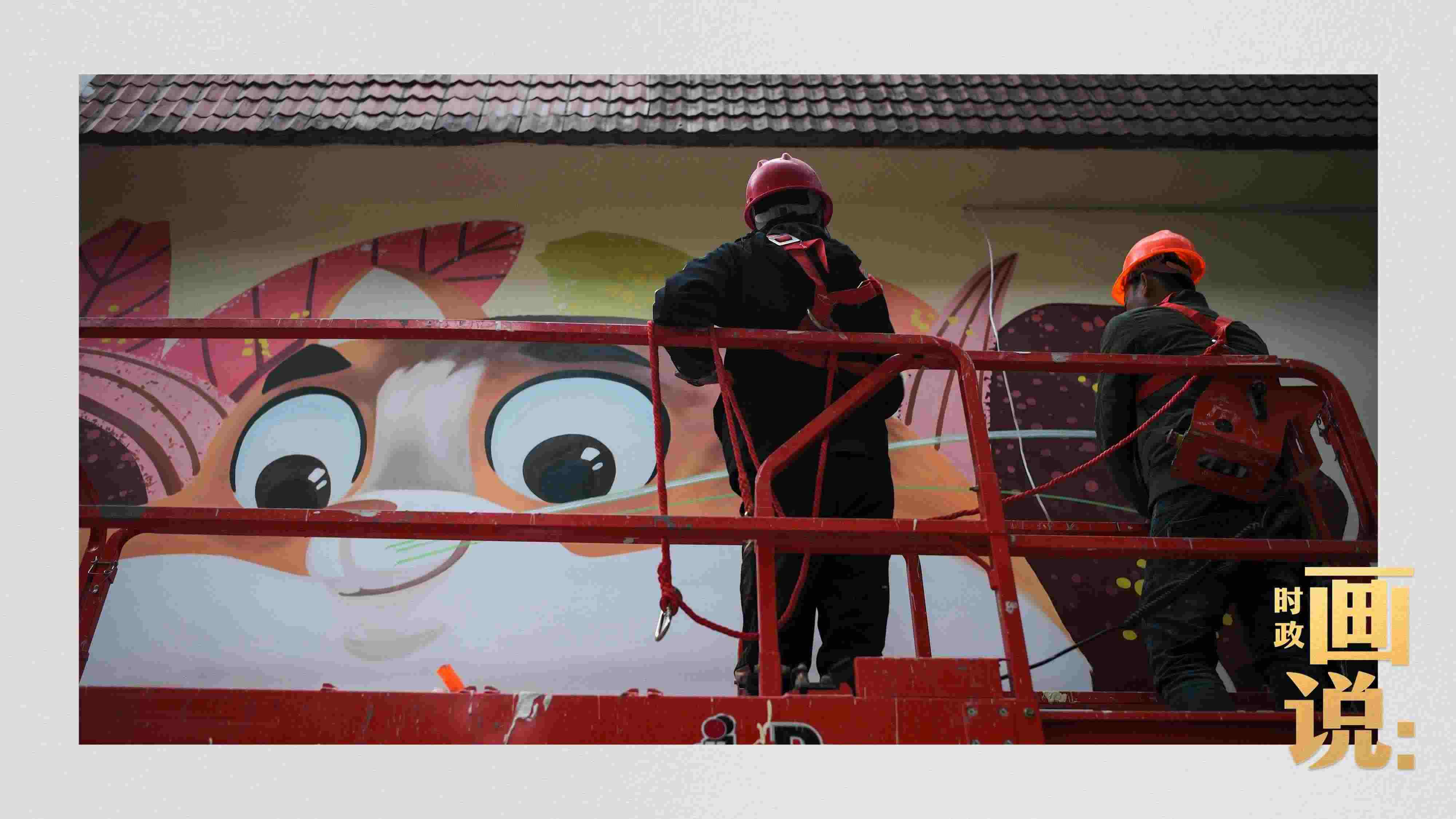 △工人在街道外墻上噴繪畫作,一座城市的藝術(shù)氣息濃縮于街巷的細節(jié)里。南昌路,上海。