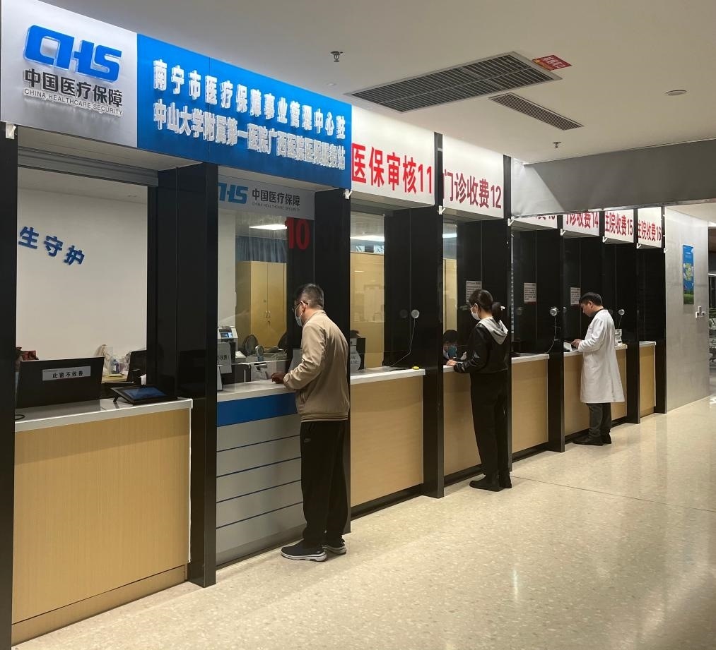 群眾在廣西壯族自治區(qū)南寧市醫(yī)療保障事業(yè)管理中心駐中山大學附屬第一醫(yī)院廣西醫(yī)院醫(yī)保服務站咨詢。(新華社記者 徐海濤攝)