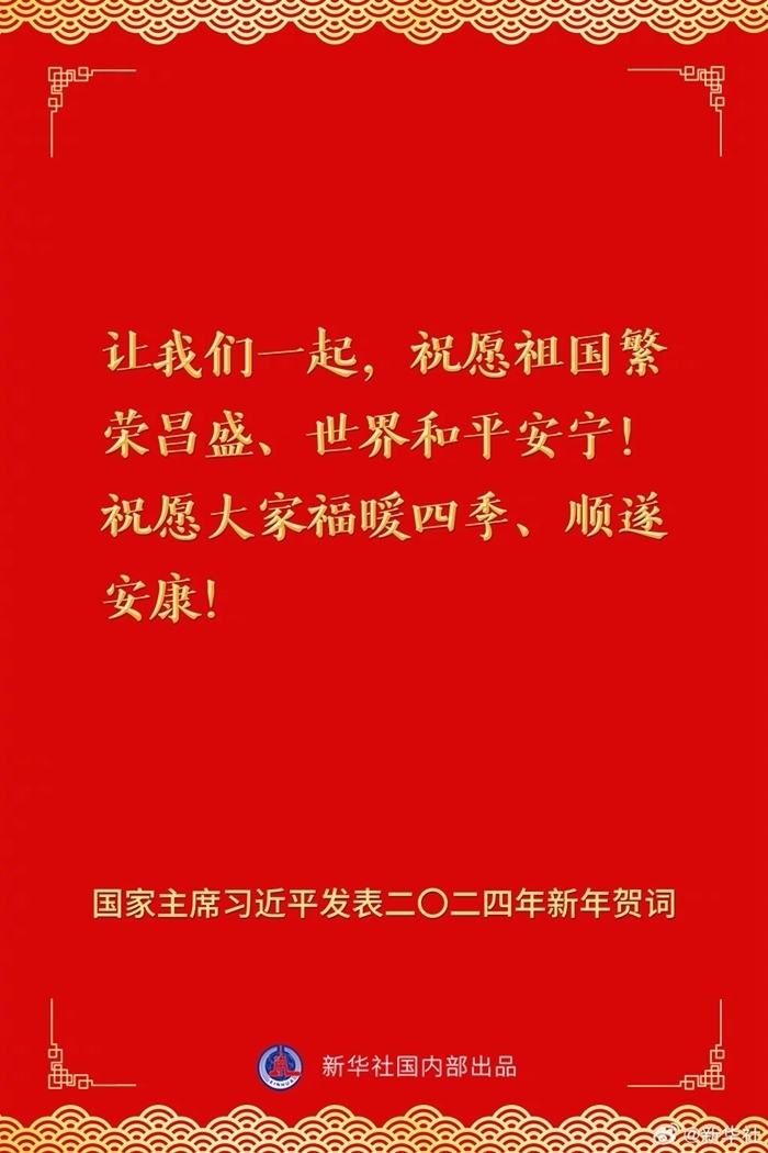 國家主席習(xí)近平發(fā)表二〇二四年新年賀詞,一起來看金句。