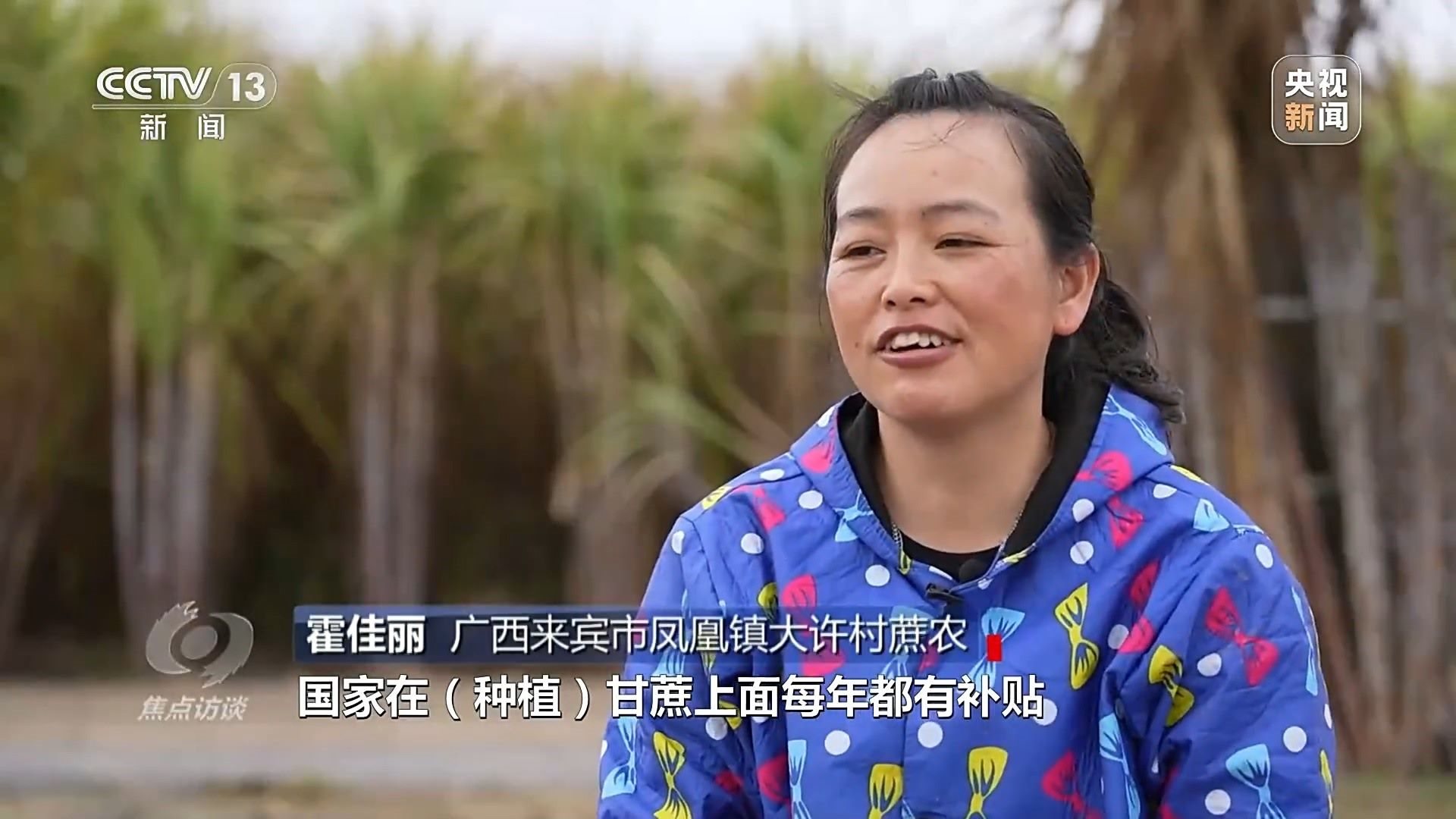 霍佳麗:“國家在(種植)甘蔗上面每年都有補(bǔ)貼,有甘蔗種苗的補(bǔ)貼,整地的機(jī)耕費(fèi)也有補(bǔ)貼?!?/p>