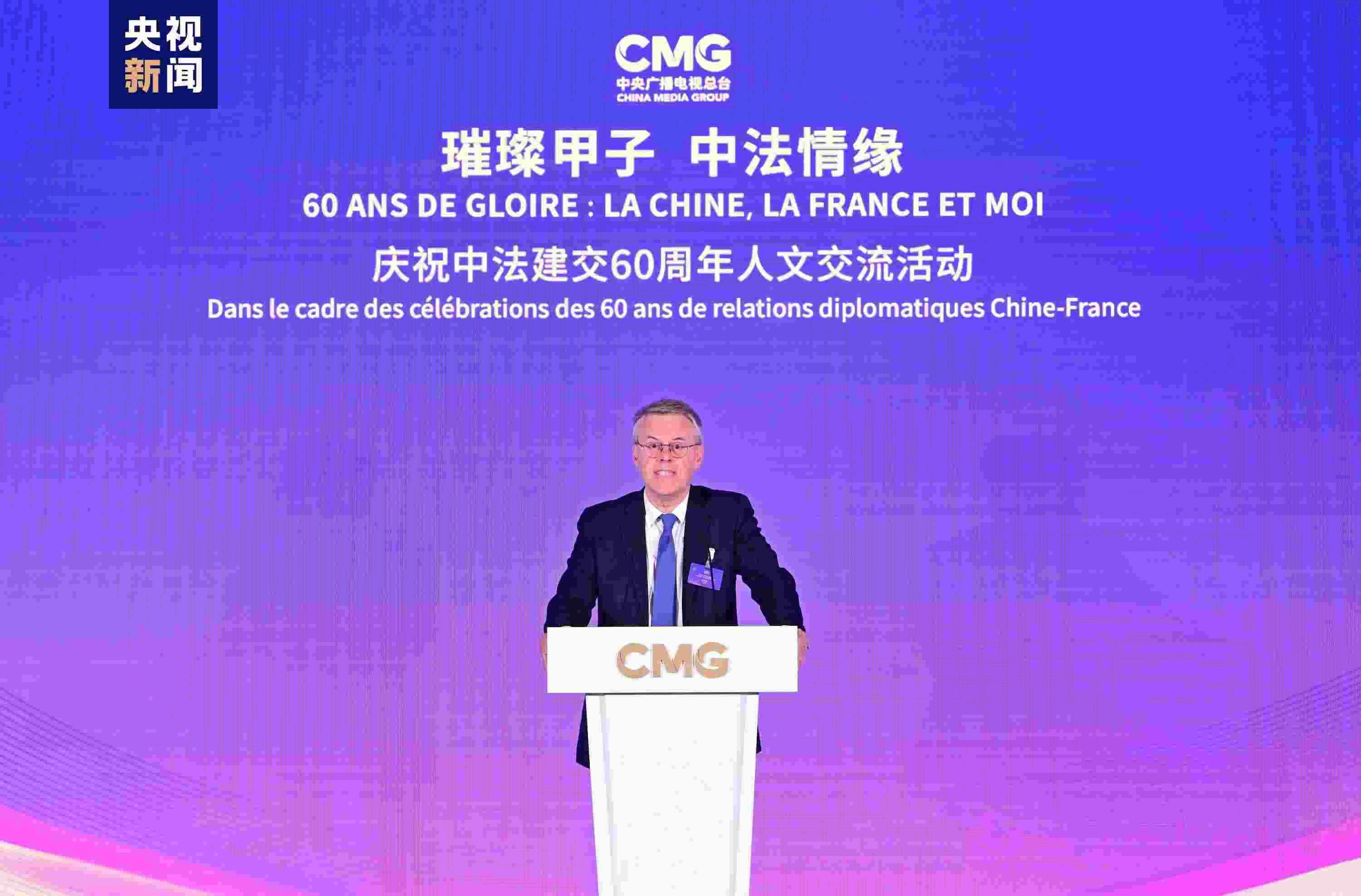 慎海雄表示,習(xí)近平主席指出,敢為人先、與時(shí)俱進(jìn)是中法關(guān)系始終走在中國同西方國家關(guān)系前列的重要法寶。法國是具有獨(dú)立見解、獨(dú)特個(gè)性的西方大國,不僅因其經(jīng)濟(jì)實(shí)力,還因國家品質(zhì)和人民氣節(jié),贏得了中國人民的尊重。建交60年來,中法兩國的友誼之船在兩國元首把舵定向下行穩(wěn)致遠(yuǎn)。人文交流貴在思想、文化的交匯、碰撞和吸引。中央廣播電視總臺精品節(jié)目《平“語”近人——習(xí)近平喜歡的典故》(國際版)在法國播出,為大家讀懂習(xí)主席的思想、中國文化、中國智慧打開一扇思想之窗,邀大家共賞璀璨輝煌的中華文明和新時(shí)代中國的獨(dú)特魅力。站在中法建交一甲子的歷史節(jié)點(diǎn),總臺愿與法國朋友們并肩同行,為打造更加牢固、更富活力的中法全面戰(zhàn)略伙伴關(guān)系、推動(dòng)構(gòu)建人類命運(yùn)共同體貢獻(xiàn)智慧和力量。