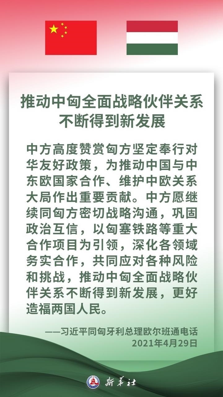 匈牙利是中東歐地區(qū)重要國家,是中方推進共建“一帶一路”及中國-中東歐國家合作的重要合作伙伴。近年來,在兩國領導人的戰(zhàn)略引領下,中匈關系保持高水平發(fā)展,兩國高層交往密切,政治互信持續(xù)深化,各領域合作扎實推進、成果豐碩,為兩國人民帶來切實利益。習近平主席說,中方愿同匈方繼續(xù)做彼此信賴、合作共贏的好朋友、好伙伴。