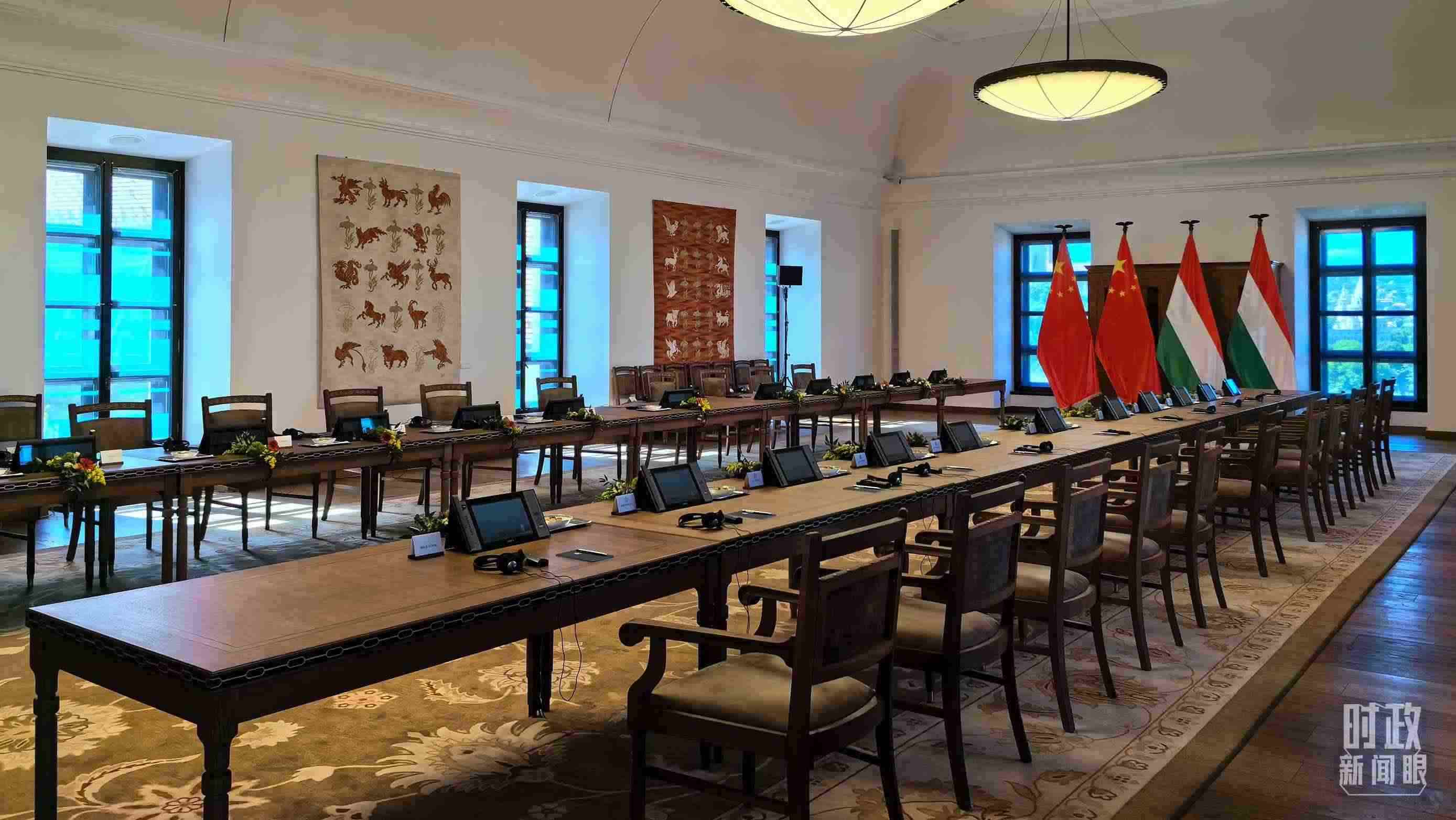 △5月9日,習(xí)主席同匈牙利總理歐爾班在這里舉行會談。這是會談開始前的現(xiàn)場。(總臺央視記者陸泓宇拍攝)
