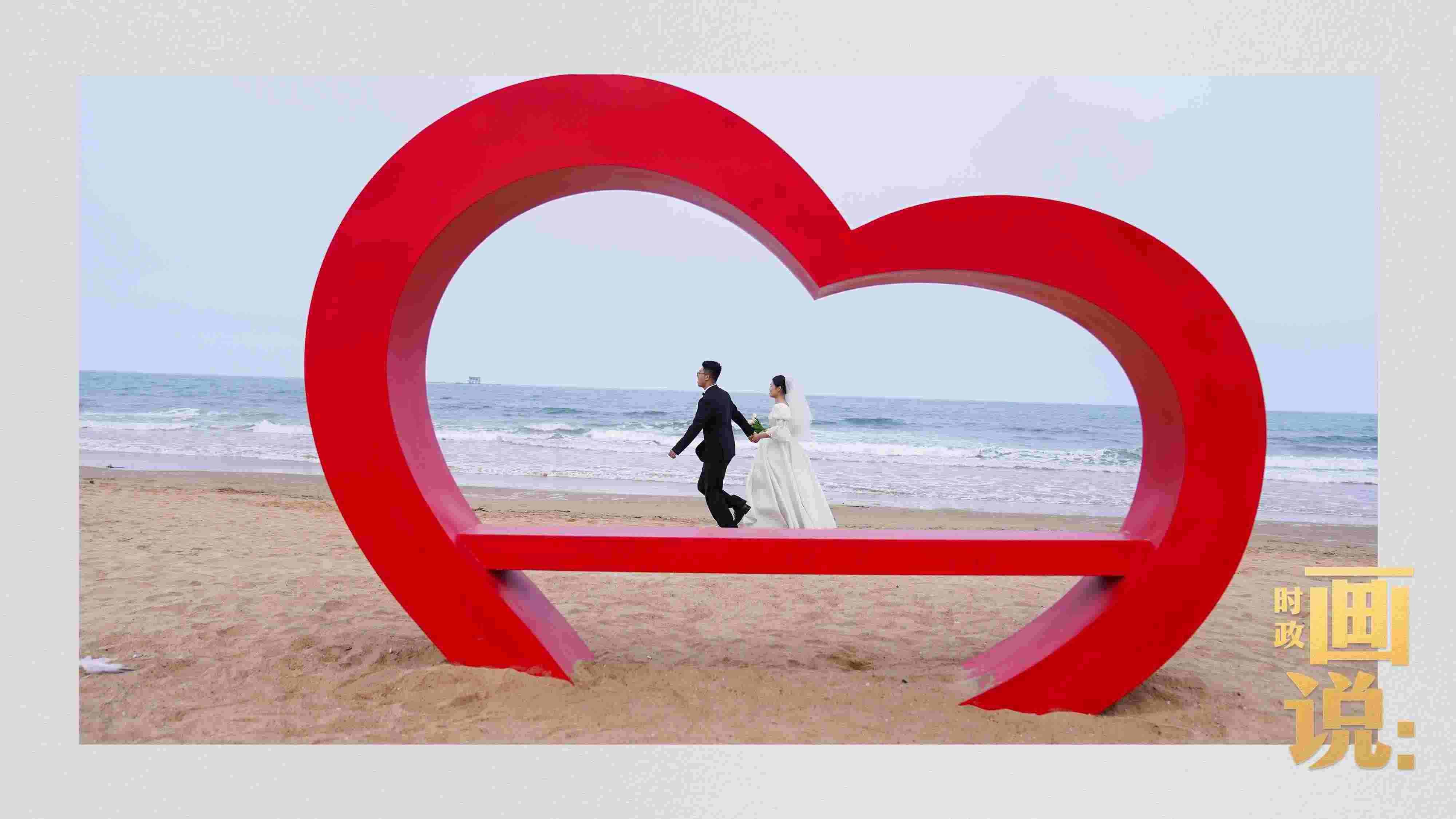△日照陽(yáng)光海岸綠道上的萬(wàn)平口景區(qū),一對(duì)游客在海浪中翩然起舞。